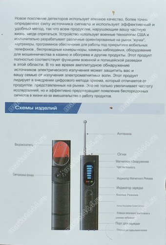 Характеристики Детектор прослушки и скрытых камер Сыщик 21